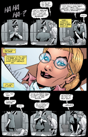In Birds of Prey #105, Harley Quinn joins the Secret Six as the sixth member. In issue #108, upon hearing that Oracle has sent the Russian authorities footage of teammate Deadshot murdering the Six's employer as payback for double-crossing them, Harley asks, "Is it a bad time to say 'I quit'?"